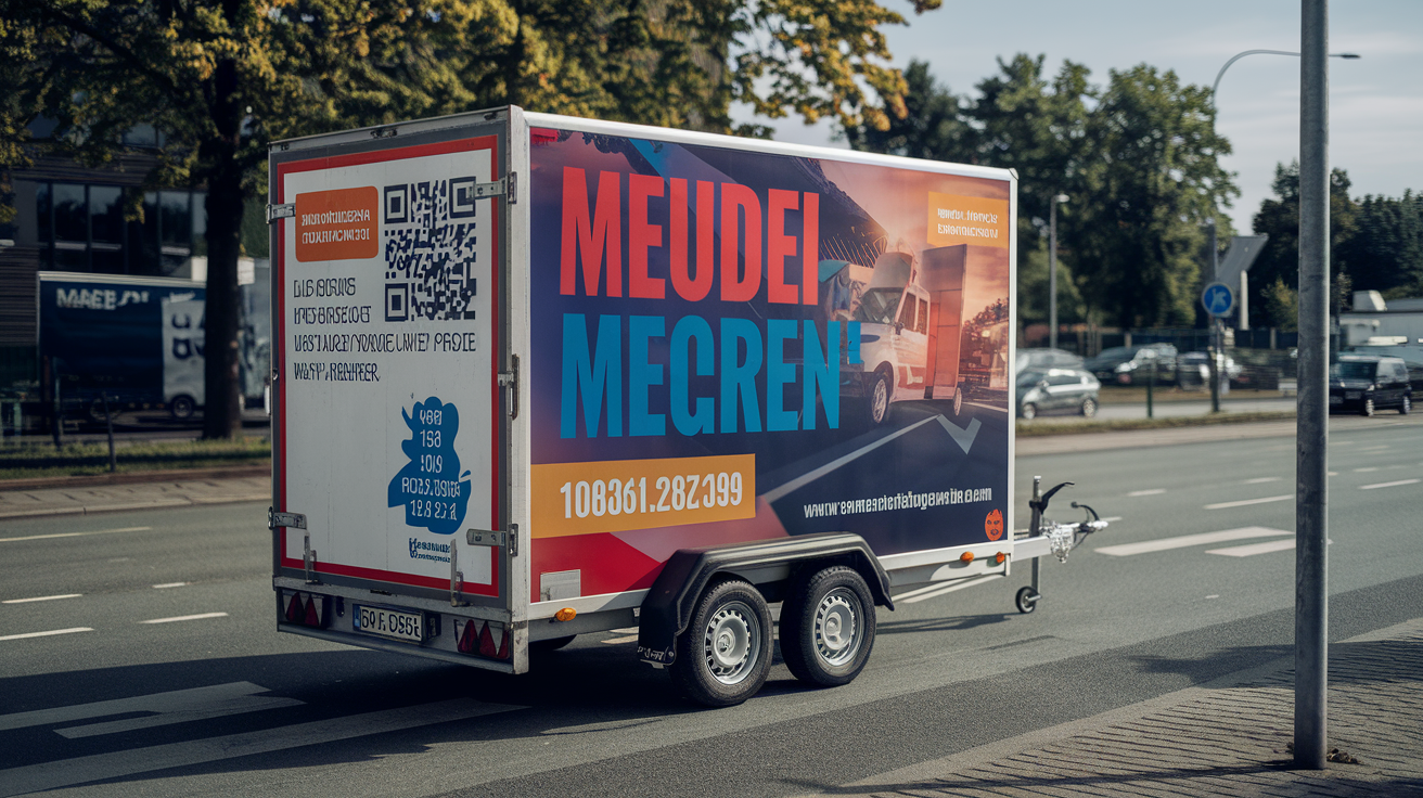 QR-Codes funktionieren überraschend gut auf Anhängern – besonders an Ampeln oder Parkplätzen. Machen Sie diese groß genug (mindestens 10×10 cm) und platzieren Sie sie in der unteren Ecke. Ihre Call-to-Action muss glasklar sein: „Jetzt anrufen“, „Website besuchen“ oder „Termin vereinbaren“ wirken besser als schwammige Aufforderungen.